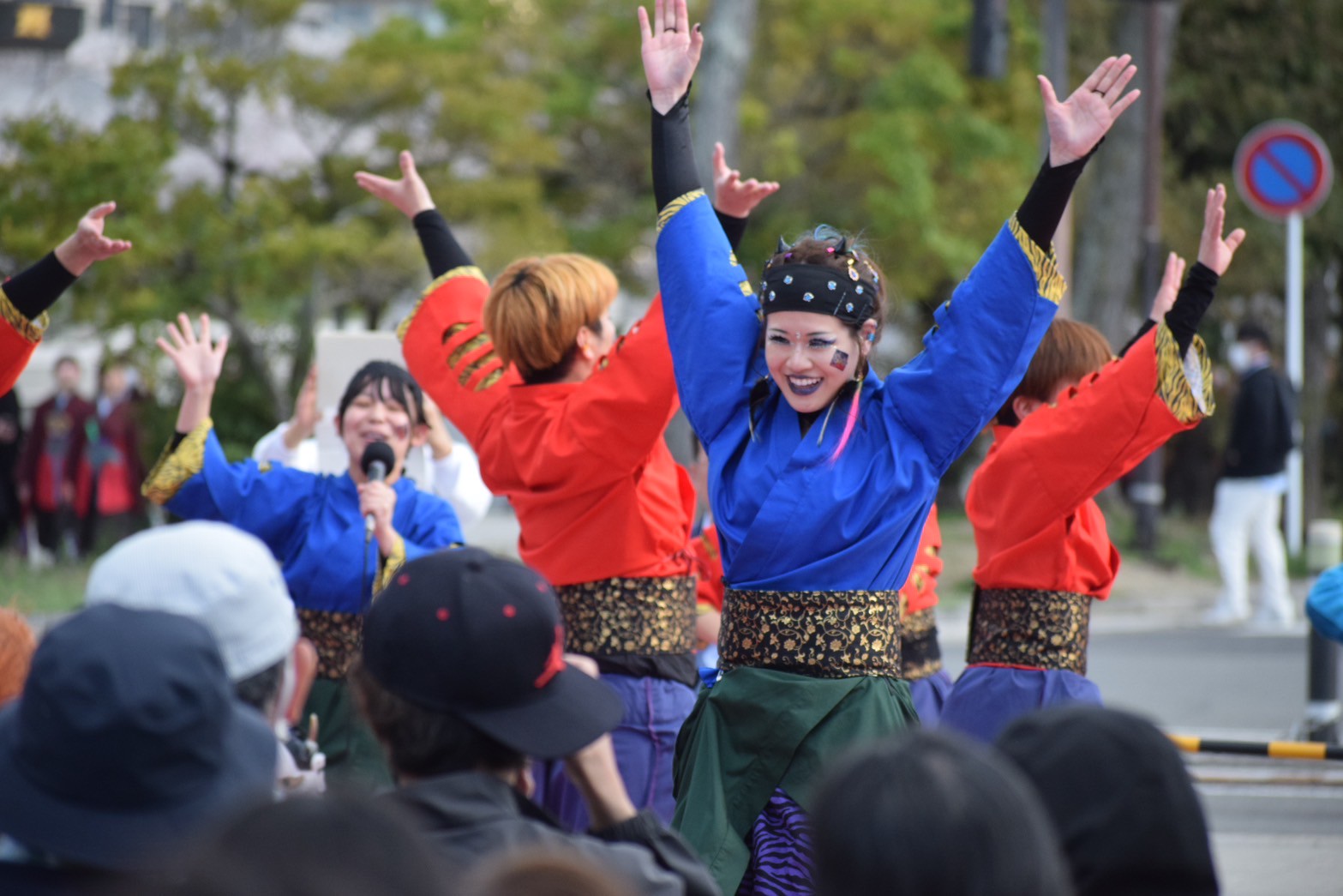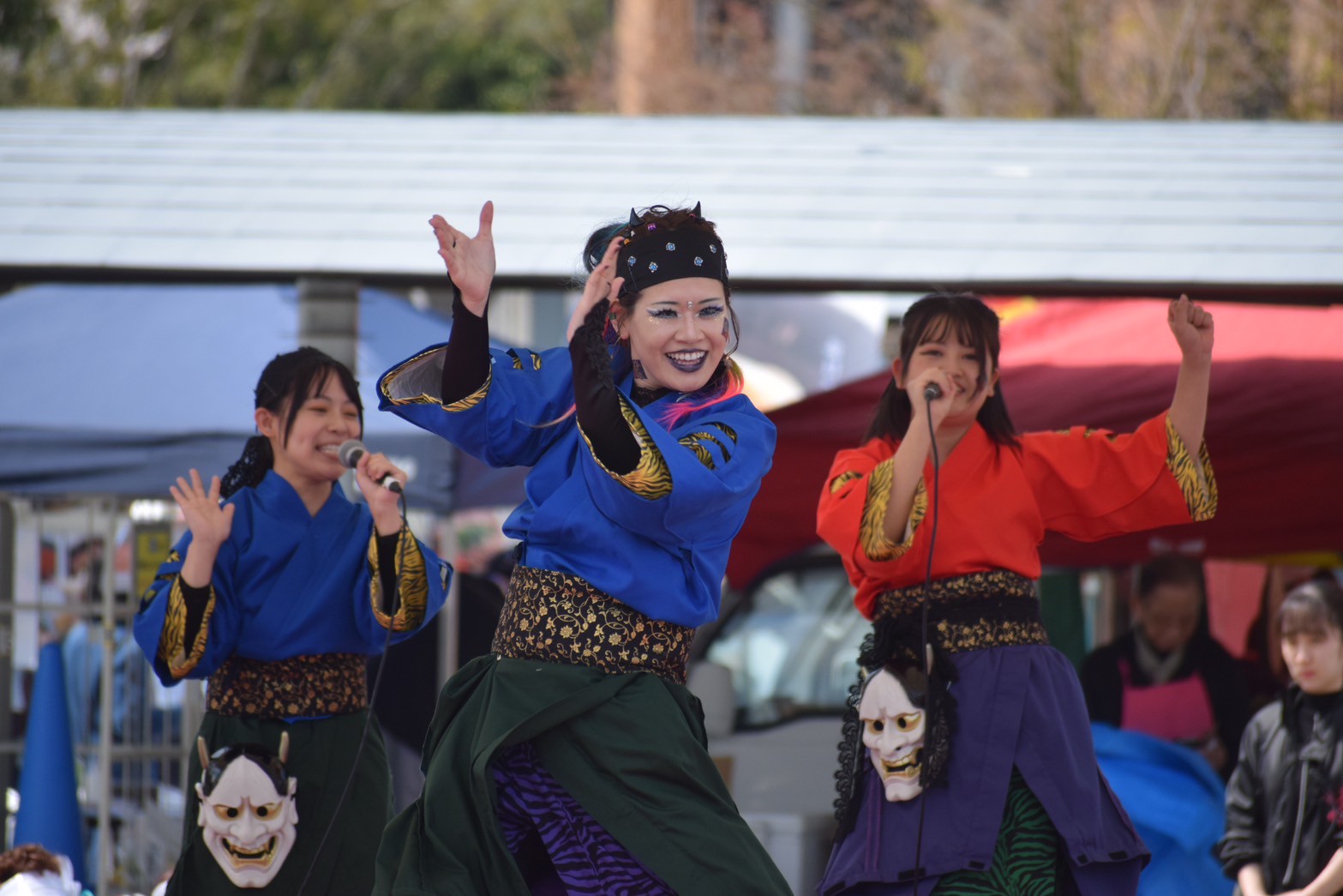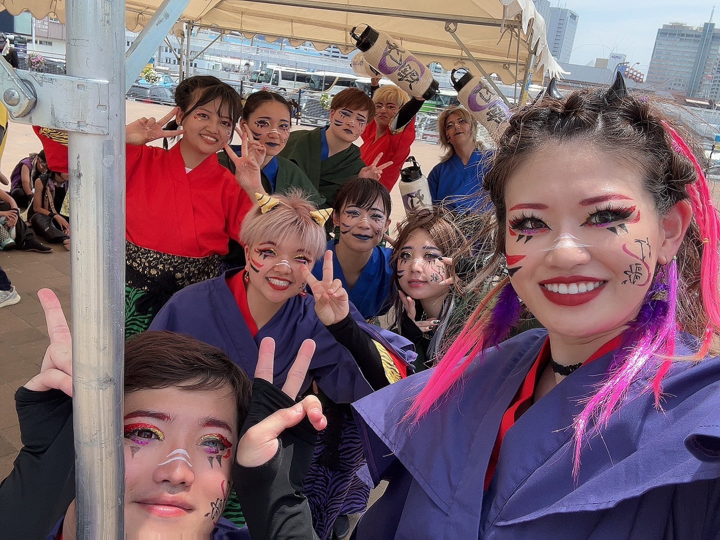 私たちの団体は、踊り子メンバーの個性を大切にし、誰も一人ぼっちにしない、とにかく優しい仲間作りを心がけています。人見知りさん、大勢の連に入るのが不安な方、踊り子初心者の方もやりたい!っていう気持ちがあれば大丈夫です。心を一つにして、自分の可能性を引き出して、温羅の伝説を広める活動を一緒に楽しみましょう! 演舞を通じて、地域との繋がりや活性化を目指して、地域貢献に努めています。
